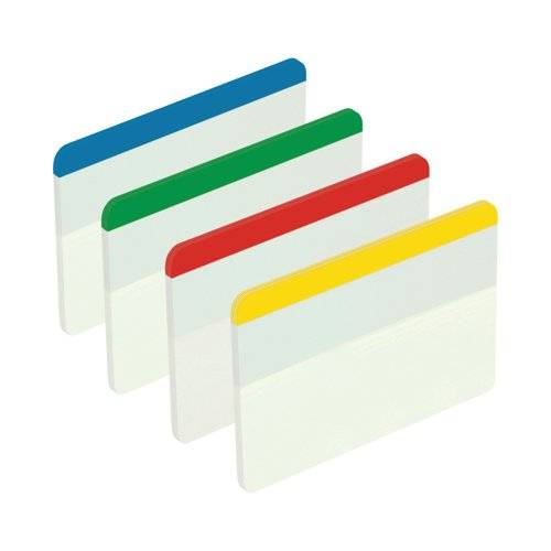 3M PostIt durable hanging file folder tabs. Repositionable angled tabs ensuring easy viewing from above. Each pack contains six easytowriteon tabs in 4 colours and 24 tabs (6 each of blue Yellow green and red). Size 50.8mm x 38mm. Find what matters.