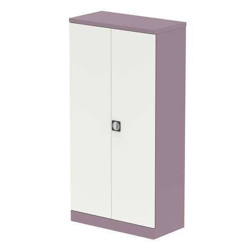 Qube 1850mm 2-Door Stationery Cupboard Pastel Violet And Satin White With Shelves