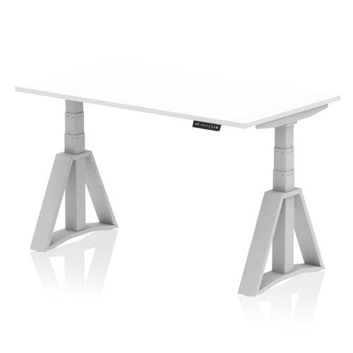 Air 1400 x 800mm Height Adjustable Office Desk White Top Silver Leg with Piste Foot