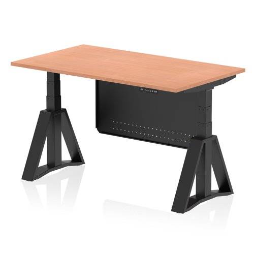 Air Modesty 1400 x 800mm Height Adjustable Office Desk Beech Top Black Leg With Black Steel Modesty Panel with Piste Foot