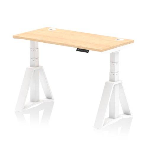 Air 1200 x 600mm Height Adjustable Office Desk Maple Top Cable Ports White Leg with Piste Foot