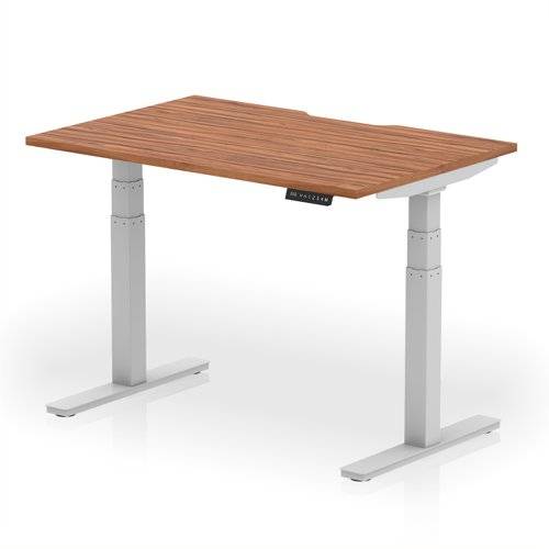 Air 1200 x 800mm Scalloped Edge Height Adjustable Office Desk Walnut Top Silver Leg