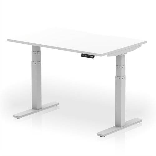 Air 1200 x 800mm Scalloped Edge Height Adjustable Office Desk White Top Silver Leg