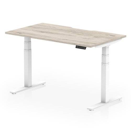 Air 1400 x 800mm Scalloped Edge Height Adjustable Office Desk Grey Oak Top White Leg