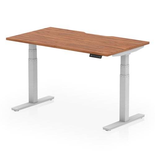 Air 1400 x 800mm Scalloped Edge Height Adjustable Office Desk Walnut Top Silver Leg