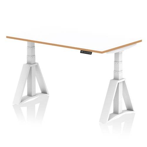 Oslo 1400mm Height Adjustable Office Desk White Top Natural Wood Edge White Frame with Piste Foot