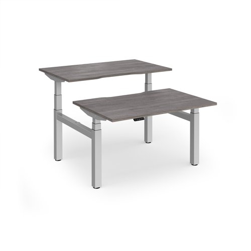 Elev8 Luxe Sit-Stand Back-To-Back Desks 1200mm x 800mm - Silver Frame / Grey Oak Top