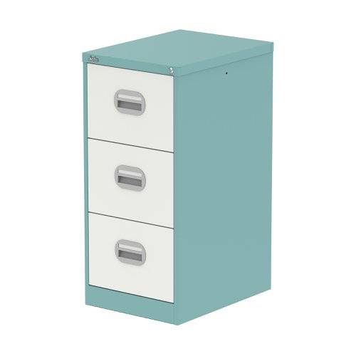 Qube 3 Drawer Filing Cabinet Pastel Turquoise And Satin White