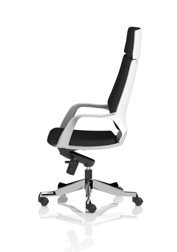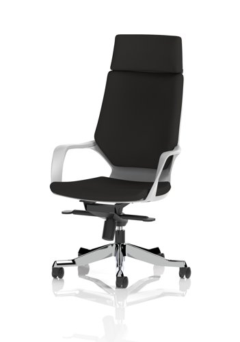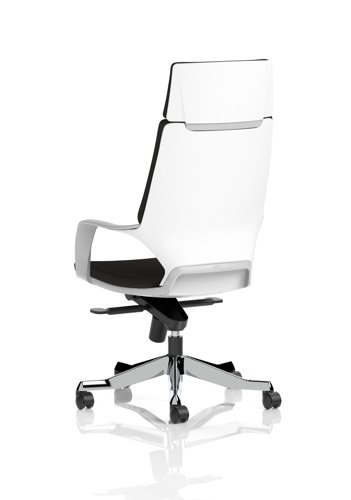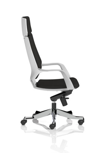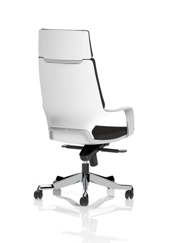 Elegant white or black acrylic shells cradle the most stylish of executive chairs the Xenon. The shell swoops down from the generously proportioned backrest to integral slim, shaped, arms which fold around to the underside of the seat shell. A high quality knee tilt ensures maximum comfort and avoids discomfort through upper leg blood vessel constriction. High density moulded foams and an integral contoured lumbar support add to the easy-seating package. A brushed aluminium five star base continues the focus on sophisticated styling at ground level. In chemistry Xenon is a member of the noble gas family in seating it is a member of the style and comfort family.