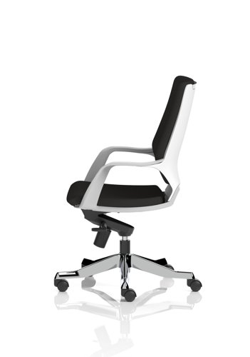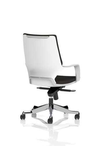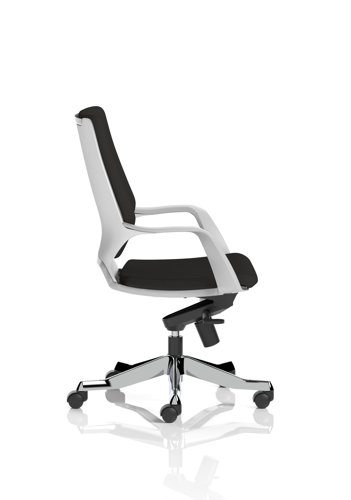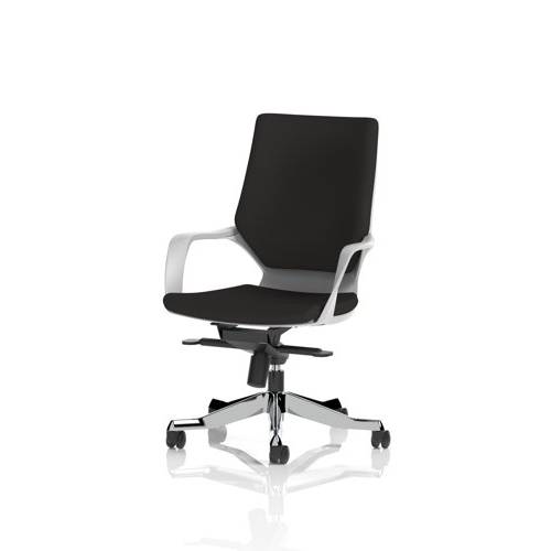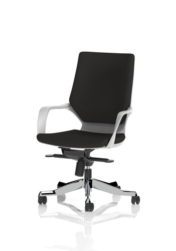 Xenon Executive Chair White Shell Black Fabric Medium Back With Arms