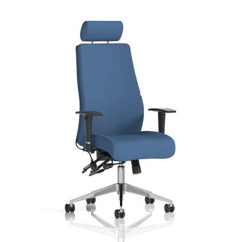 - The Onyx chair is a fresh, contemporary office chair that offers a range of inspired features such as a multi-functional asynchronous mechanism with multiple adjustments and a contoured foam seat and back for extra support and comfort. The Onyx is a top choice for a posture task chair. Available in black or blue fabric and Soft Bonded Leather upholstery options. Optional headrest variant available.