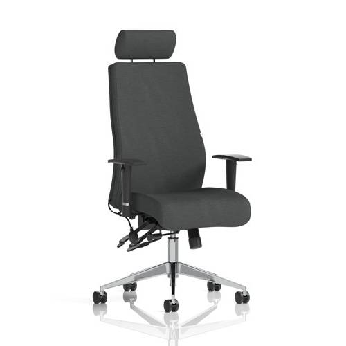 - The Onyx chair is a fresh, contemporary office chair that offers a range of inspired features such as a multi-functional asynchronous mechanism with multiple adjustments and a contoured foam seat and back for extra support and comfort. The Onyx is a top choice for a posture task chair. Available in black or blue fabric and Soft Bonded Leather upholstery options. Optional headrest variant available.