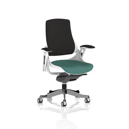 Zure White Shell Black Fabric Back Bespoke Colour Seat Quest Kelp