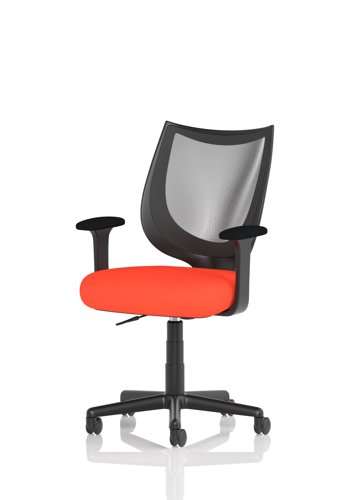 - The medium back chair has black mesh upholstery with a metal frame. This operator chair comes with fixed arms. Castors allow easy mobility within an office environment.