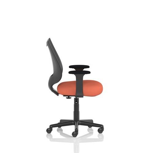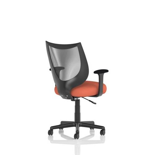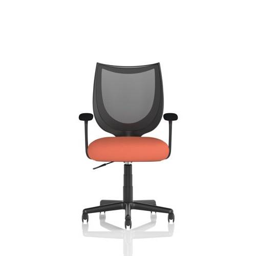 - The medium back chair has black mesh upholstery with a metal frame. This operator chair comes with fixed arms. Castors allow easy mobility within an office environment.