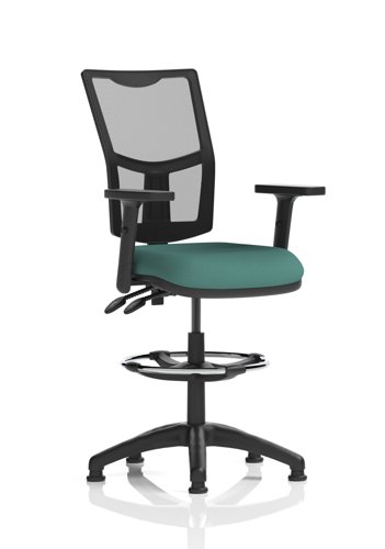 Eclipse Plus II Lever Task Operator Chair Mesh Back With High Rise Draughtsman Kit With Height Adjustable Arms Bespoke Colour Seat Quest Kelp