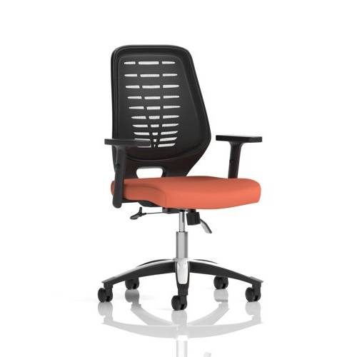 - Chosen time and time again, the Relay is the ever popular mesh operator option. Modern styling with silver and chrome accented base & gas lift and easy fold armrests are complimented by a cool vented backrest design that is finished in a choice of either black or silver breathable mesh that allows you to keep your cool. The Relay makes for a versatile chair for all office environments.