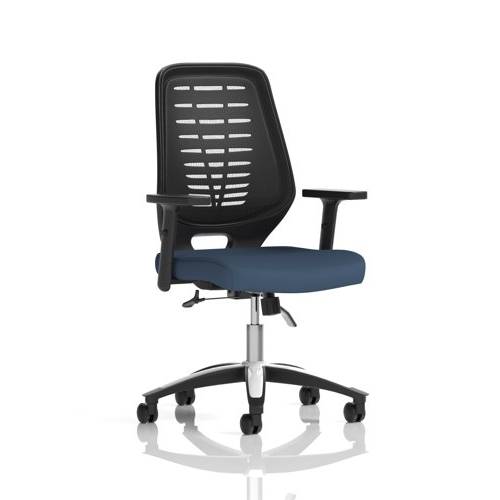 - Chosen time and time again, the Relay is the ever popular mesh operator option. Modern styling with silver and chrome accented base & gas lift and easy fold armrests are complimented by a cool vented backrest design that is finished in a choice of either black or silver breathable mesh that allows you to keep your cool. The Relay makes for a versatile chair for all office environments.