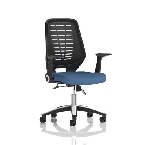 - Chosen time and time again, the Relay is the ever popular mesh operator option. Modern styling with silver and chrome accented base & gas lift and easy fold armrests are complimented by a cool vented backrest design that is finished in a choice of either black or silver breathable mesh that allows you to keep your cool. The Relay makes for a versatile chair for all office environments.