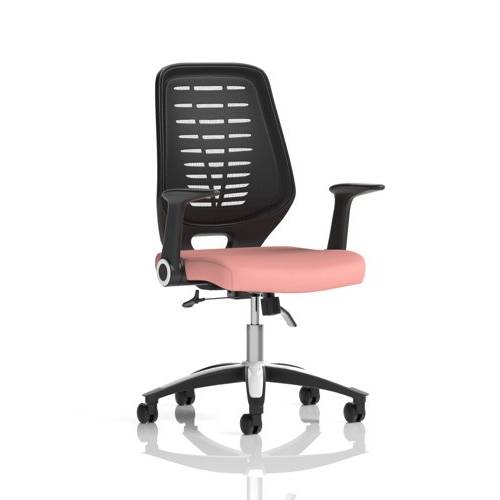 - Chosen time and time again, the Relay is the ever popular mesh operator option. Modern styling with silver and chrome accented base & gas lift and easy fold armrests are complimented by a cool vented backrest design that is finished in a choice of either black or silver breathable mesh that allows you to keep your cool. The Relay makes for a versatile chair for all office environments.