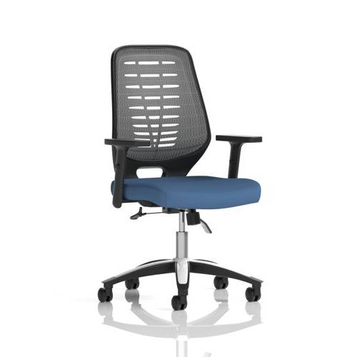 - Chosen time and time again, the Relay is the ever popular mesh operator option. Modern styling with silver and chrome accented base & gas lift and easy fold armrests are complimented by a cool vented backrest design that is finished in a choice of either black or silver breathable mesh that allows you to keep your cool. The Relay makes for a versatile chair for all office environments.