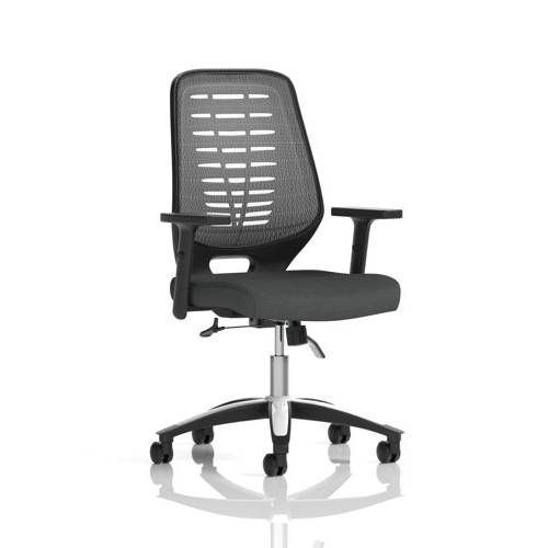 - Chosen time and time again, the Relay is the ever popular mesh operator option. Modern styling with silver and chrome accented base & gas lift and easy fold armrests are complimented by a cool vented backrest design that is finished in a choice of either black or silver breathable mesh that allows you to keep your cool. The Relay makes for a versatile chair for all office environments.