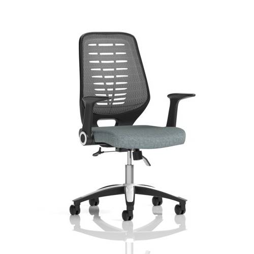 - Chosen time and time again, the Relay is the ever popular mesh operator option. Modern styling with silver and chrome accented base & gas lift and easy fold armrests are complimented by a cool vented backrest design that is finished in a choice of either black or silver breathable mesh that allows you to keep your cool. The Relay makes for a versatile chair for all office environments.