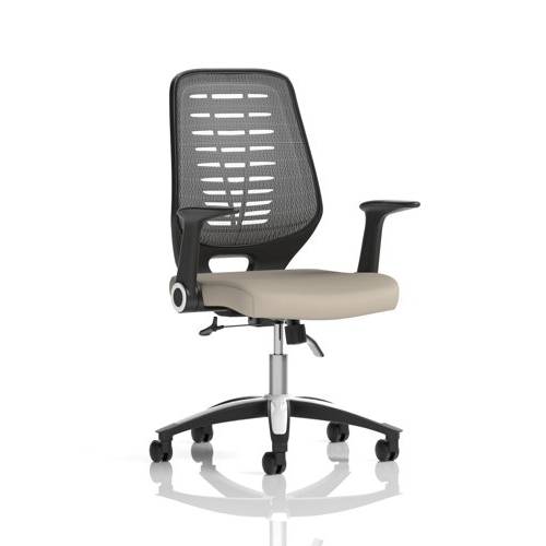 - Chosen time and time again, the Relay is the ever popular mesh operator option. Modern styling with silver and chrome accented base & gas lift and easy fold armrests are complimented by a cool vented backrest design that is finished in a choice of either black or silver breathable mesh that allows you to keep your cool. The Relay makes for a versatile chair for all office environments.