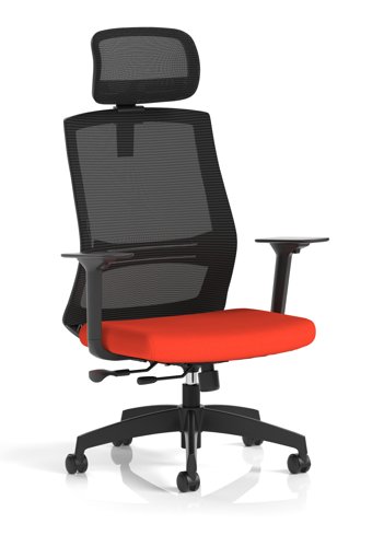 Ventra Mesh Back Task Operator Chair With Height Adjustable Arms With Headrest Bespoke Colour Seat Tabasco Orange