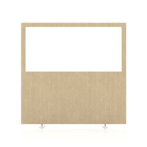 Impulse Plus Clear Half Vision 1200/1200 Floor Free Standing Screen Beige Fabric Light Grey Edges