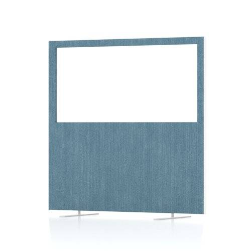Impulse Plus Clear Half Vision 1200/1200 Floor Free Standing Screen Sky Blue Fabric Light Grey Edges