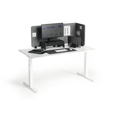 - The Durable Desk Divider Panel in grey provides effective acoustic and visual protection in busy workspaces, promoting a calm and focused atmosphere. Its sustainable design features 60% recycled PET felt, combining environmental responsibility with modern style. This desk divider helps define personal spaces, reduce noise distractions and improve concentration in offices, libraries, and collaborative environments.