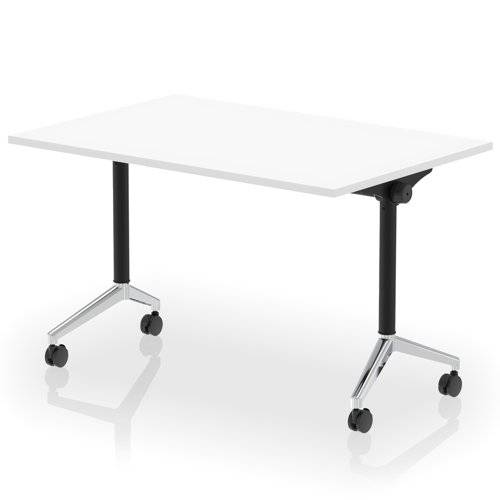 Impulse Plus Flip Top 1200mm Rectangular Table With Chrome Foot White Top