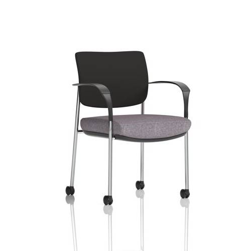 Brunswick Deluxe With Arms Chrome Frame With Castors Black Fabric Back Bespoke Colour Seat Rivet Fuse
