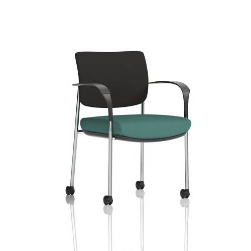 Brunswick Deluxe With Arms Chrome Frame With Castors Black Fabric Back Bespoke Colour Seat Quest Kelp