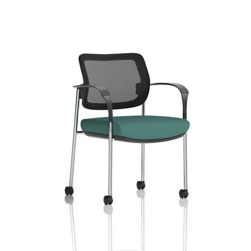 Brunswick Deluxe With Arms Chrome Frame With Castors Mesh Back Bespoke Colour Seat Quest Kelp