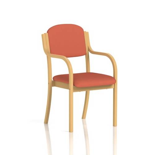 A beech wooden frame with generous seat and arms as standard in a choice of black or blue fabric. Ideal for many functions.
