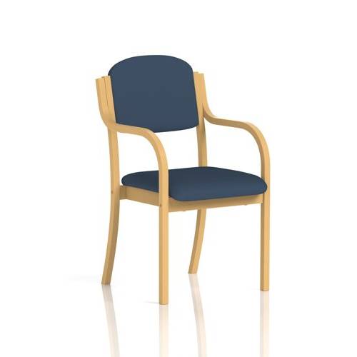A beech wooden frame with generous seat and arms as standard in a choice of black or blue fabric. Ideal for many functions.