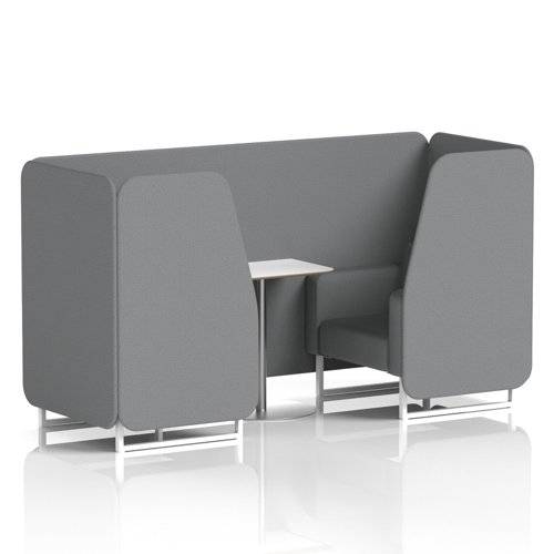 Brixworth 2 Seater Booth With White Legs And White Table With Silver Leg In Synergy Fabric - Partner Panels And Sofa