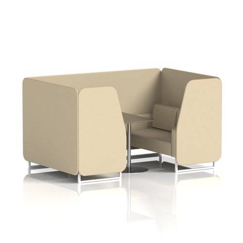 - The Brixworth 4 Seater Booth with Table is designed for collaboration, bringing teams together in a space tailored for productive meetings, group discussions, or shared tasks. The integrated table offers a practical surface for laptops, notes, or refreshments, making it an ideal hub for teamwork. Crafted in the UK with FSC-certified wood and sustainable materials, this booth is built to support both your team’s needs and your environmental values. Its semi-enclosed design fosters focus while maintaining an open, welcoming feel for group interaction.