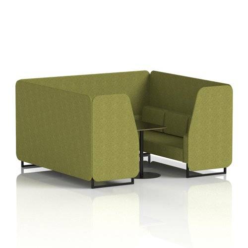 Brixworth 6 Seater Booth With Black Legs And Black Table With Black Leg In Rivet Fabric - Olive Panels And Sofa