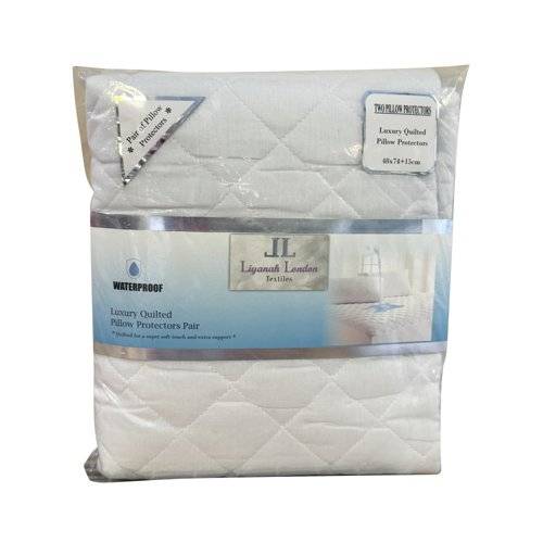 - These waterproof pillow protectors are made from a blend of cotton and polyester (50/50), which is easy to wash and dry with faster results. Quilted with polyester wadding, they are soft and comfortable to rest the head on and keep the pillows clean and dry from accidents. They are machine washable, fully recyclable and are supplied in a pack of 20 in white.
