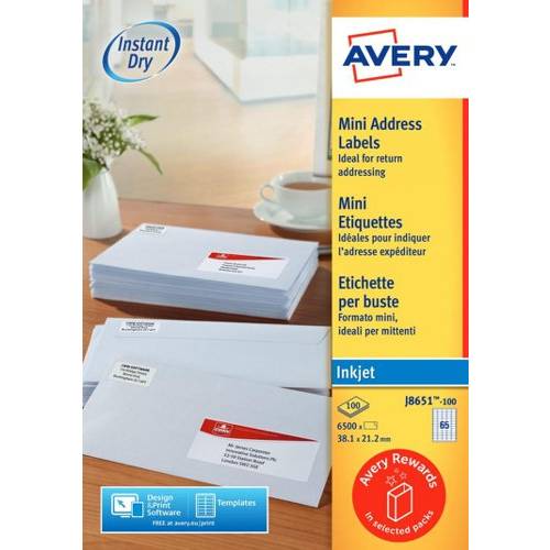 - Make undelivered mail a thing of the past by adding your return address to your mailings. Avery Mini Address Labels are a great little way to ensure undelivered mail is returned to the sender. These small sized labels come in 65 labels per sheet and are guaranteed to run smoothly through your inkjet printer. And with our special QuickDRY™ promise, ensuring smudge free results, you can confidently apply the label straight onto your envelopes without any smudge marks. Whether you’re printing in black and white or adding colour, these super white labels will look sharp and smart on your envelopes and small packages