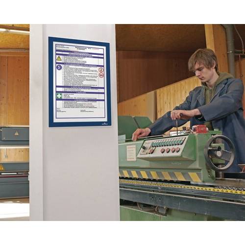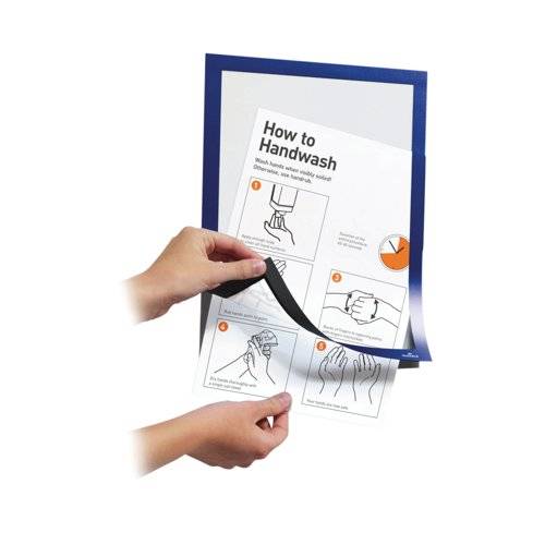 The self-adhesive info frame DURAFRAME is the ideal solution for displaying information on solid and smooth surfaces. The inserts can be quickly exchanged thanks to the magnetic fold-back frame. When applied to glass, the information can be read from both sides and will leave no residue when removed. Perfect for displaying notices, signage, safety information in any workplace or at home.