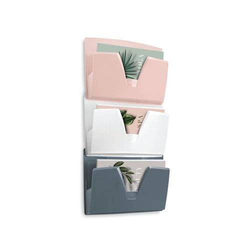 The CEP Mineral Wall Files have got u-shaped cutaway sides which enables document holding up to A3 size. A wide v-shaped access provides an excellent holding of contents, even of small size such as business cards and commercial envelopes. The solid back makes it comfortable to use and the item comes with 6 blank adhesive labels for easy content identification. Wall files can be fixed to the wall separately or together 'in clusters' with a clip-on system. A fixing kit is provided. A set of three wall files hung in a cluster can support up to 5.5kg of weight.