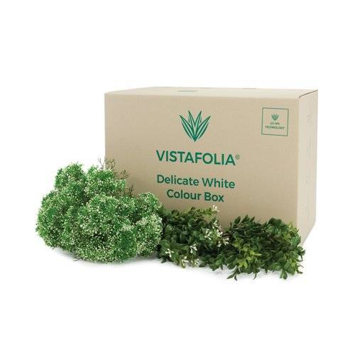 - The Delicate White Colour Box comprises a lovely mix of summer blossoms dotted with delicate white flowers.