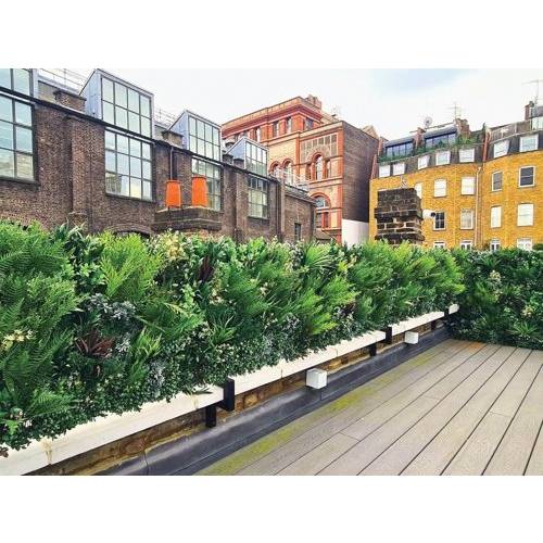 The Lush Green Texture Box comprises a tumble of wild grasses and earthy ferns merged with green-fused and delicate flowers.