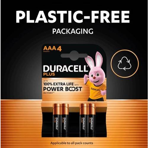 Duracell Plus AAA Batteries with Power Boost (Pack 4) - MN2400B4BOOST