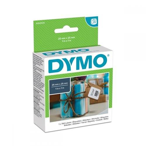 - Dymo label roll for labelwriter. Multi purpose application. Label size: 25x25mm. 750 Labels in a box. Perfect for envelopes file folders and many other labelling tasks.