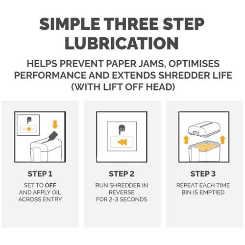 - Applying oil to your shredder helps to lubricate the blades and optimise the function of your machine. By improving functionality of your shredder you increase the life of the unit and thereby decrease replacement costs and energy consumption concerns associated with a shredder performing at less than optimum levels. This Fellowes Shredder Oil has been specifically designed for use with Fellowes shredders to improve operations and preserve the integrity of your machine. Use this oil regularly to keep the cutting mechanism clean and free from paper dust. Essential for peak shredder performance.